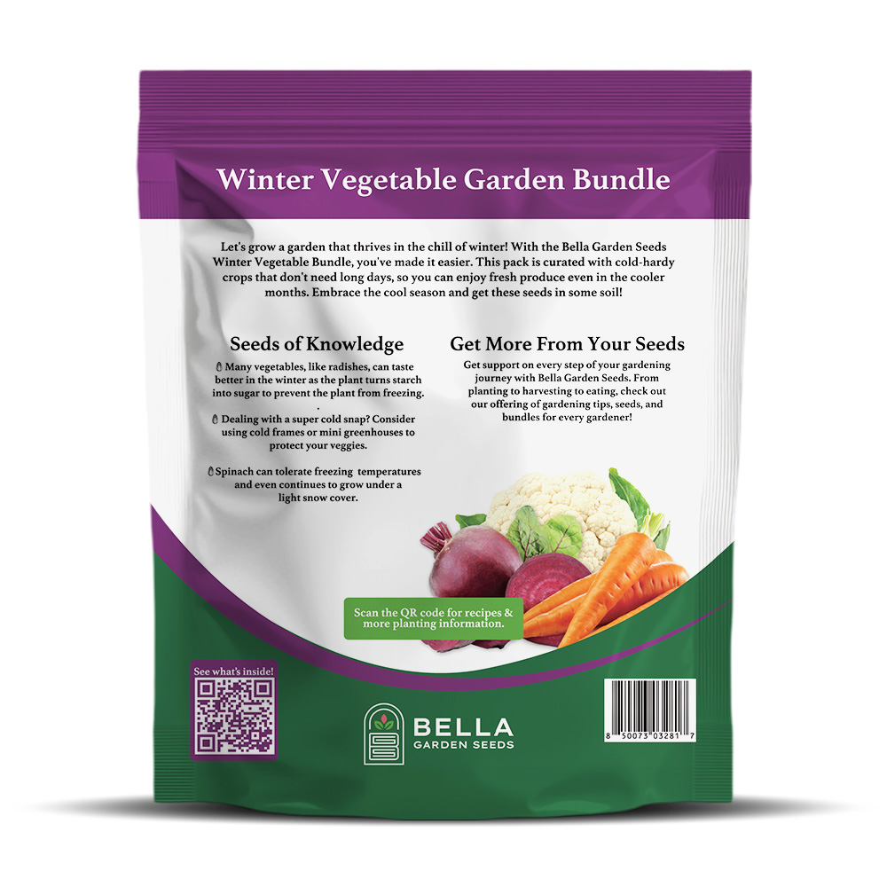 This bundle keeps your garden going when the temperature drops. Plant in late summer or early fall so crops establish before the coldest weather arrives. Cold frames, row covers, or cloches can extend your growing season even further in zones with hard freezes.